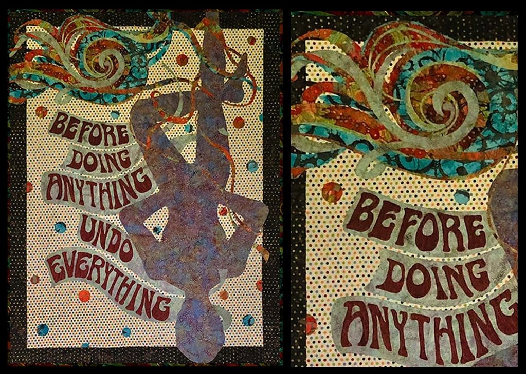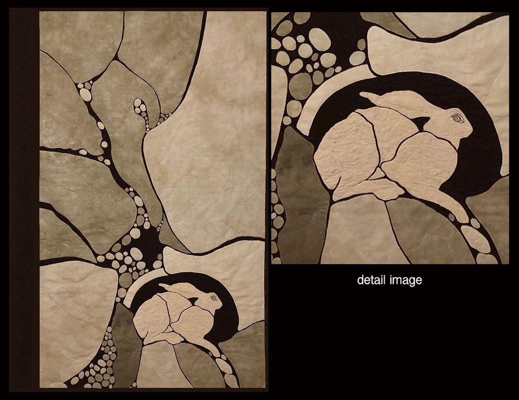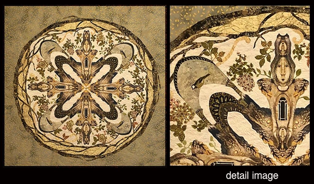 Quilting is a contemplative meditation practice for me. I hold something in my awareness that I want to understand, heal or explore and then I listen intuitively and respond in each moment to the inspiration I receive. Because I never plan a piece, this co-creative process is very much like a dance between self and spirit. The awareness that comes through often takes me by surprise as much as the finished pieces. This way of working has enhanced and honed my intuitive abilities as well as my creativity. I love Socrates exclamation that the unexamined life is not worth living. This quest is primary in my life. The work that comes out of that exploration is simply an extension of this introspective transmutation process.